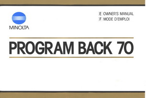 ![]() Mode d'emploi en Français 1984 (merci à Eddy R.) | ![]() Flash 2800 AF (merci à Eddy R.) 1984 | ![]() Minolta Program back 70. Manuel 1984.(merci à Eddy R.) 1984 |