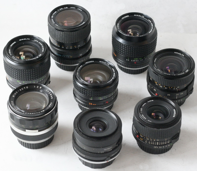 montures Minolta MC/MD, Minolta 800si pour celles en Minolta AF et Canon EOS 3 pour celle en Canon EF.